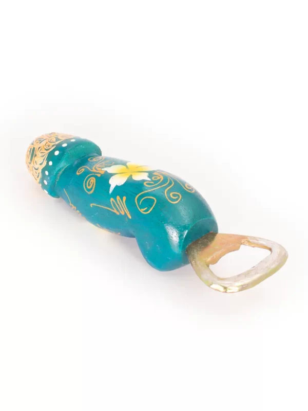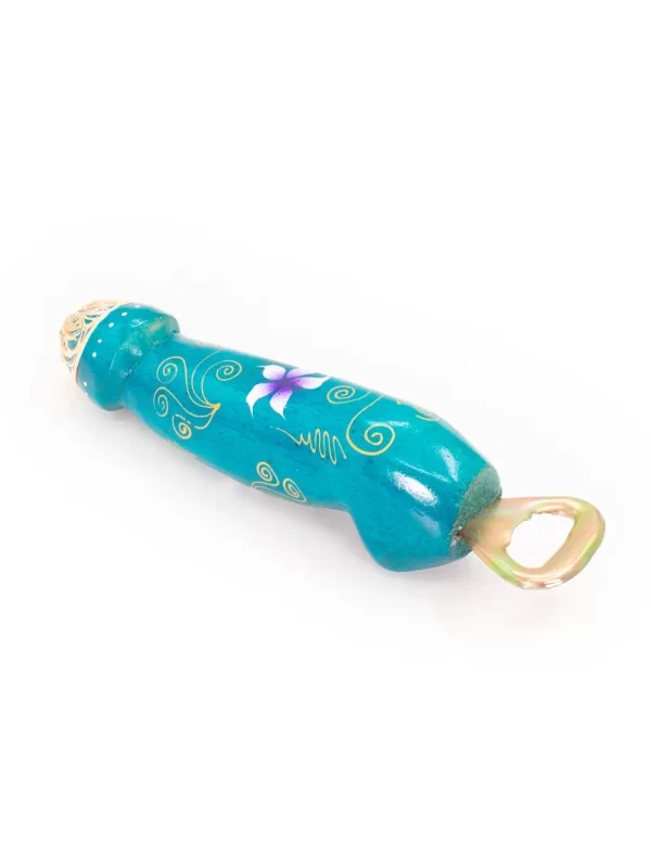 Destapador de Botella Material: Madera Medida: 12 cm Forma: Pene Color:Turquesa