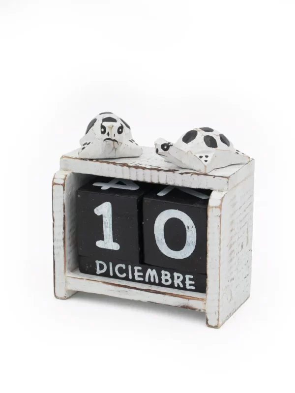 Calendario Tortuga Material: Madera Medida: 10 cm Color: Blanco