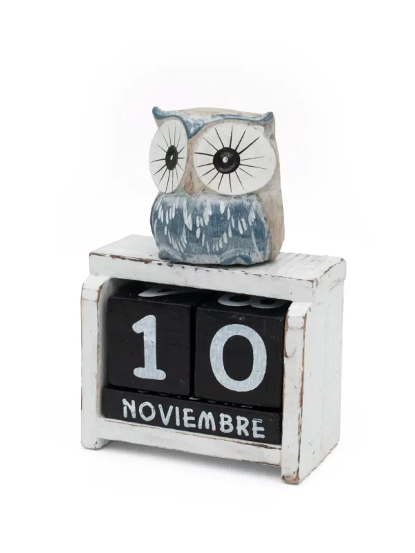 Calendario Buho Material: Madera Medida: 18 cm Color: Blanco