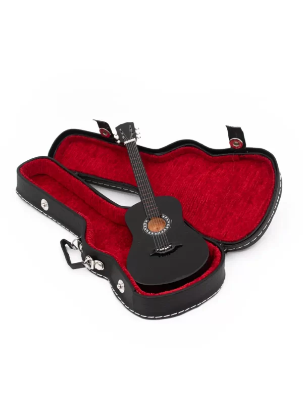Guitarra Material: Madera Medida: 23 cm Medida del estuche: 27 cm Color:Marron Nota: El fondo del estuche puede variar de color.