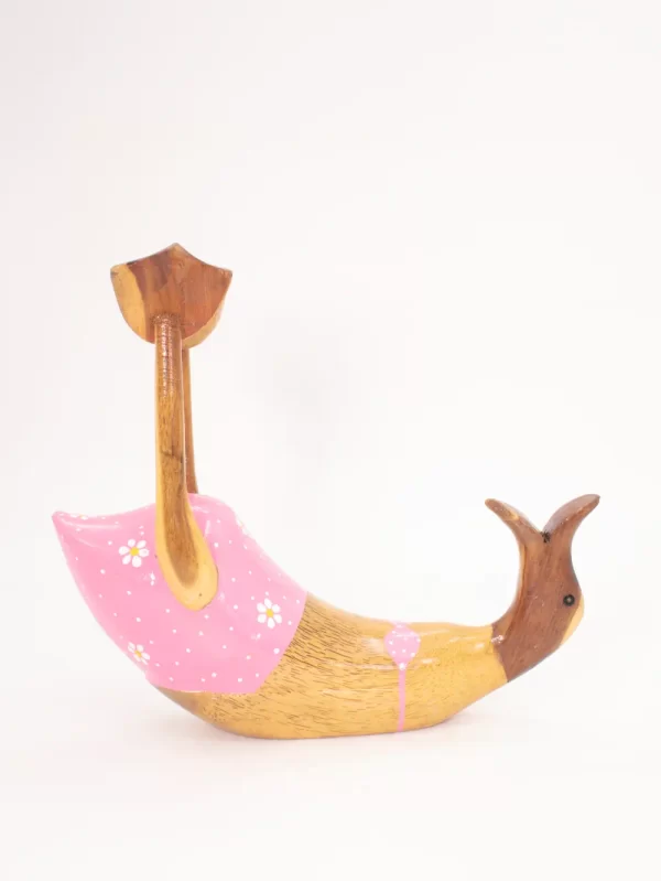 Porta botella Material: Madera Medida: 25x30 cm Forma: Pato Diseño: Bikini Rosado