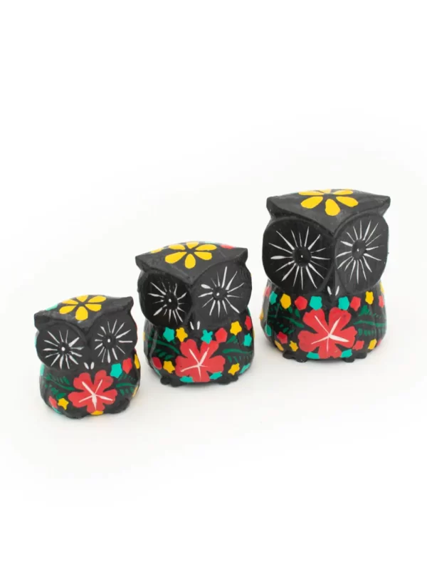 Set de Búhos Material: Madera Medida: 7, 8, 10 cm Forma: Búho Diseño: Floreado mixto