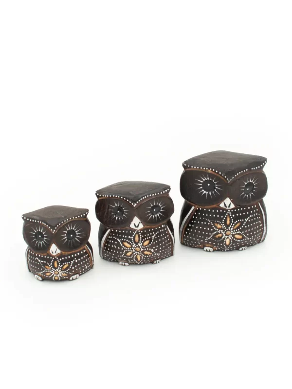 SET DE 3 BUHOS MARRON-F
