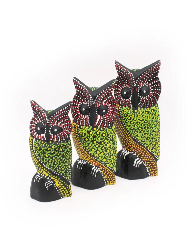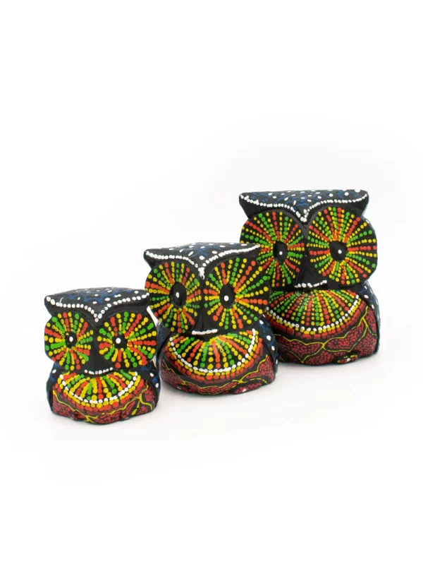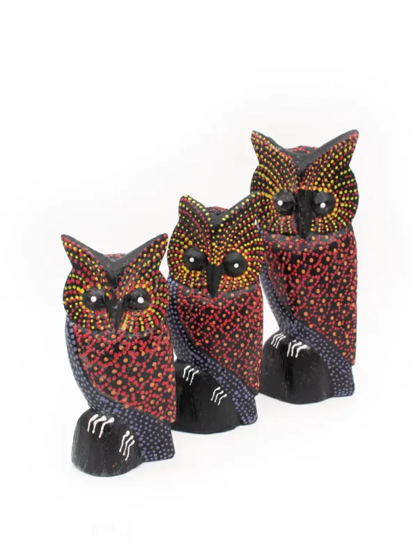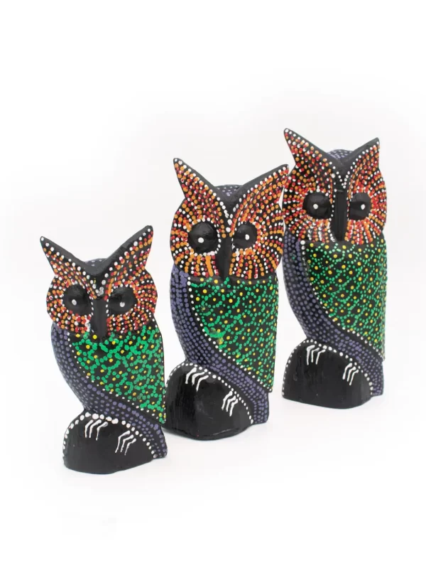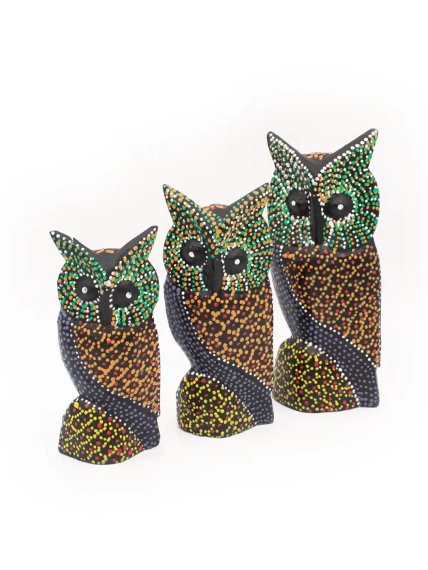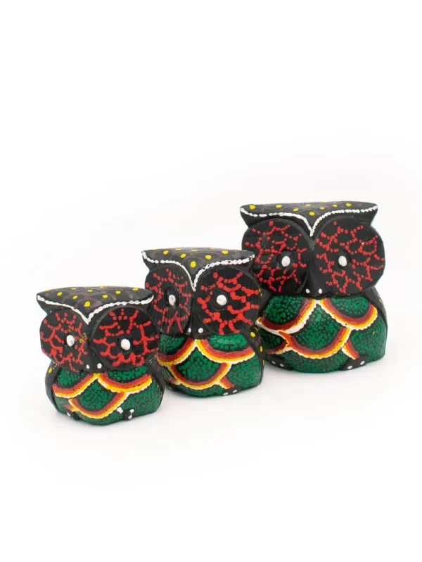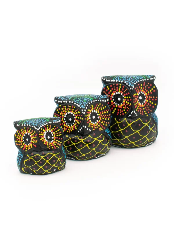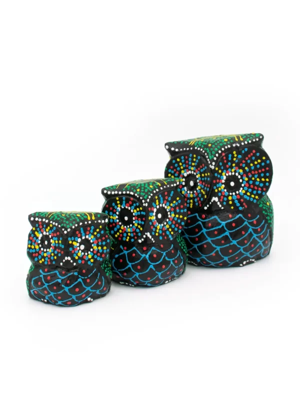 Set de Búhos Material: Madera Diseño: Puntillismo