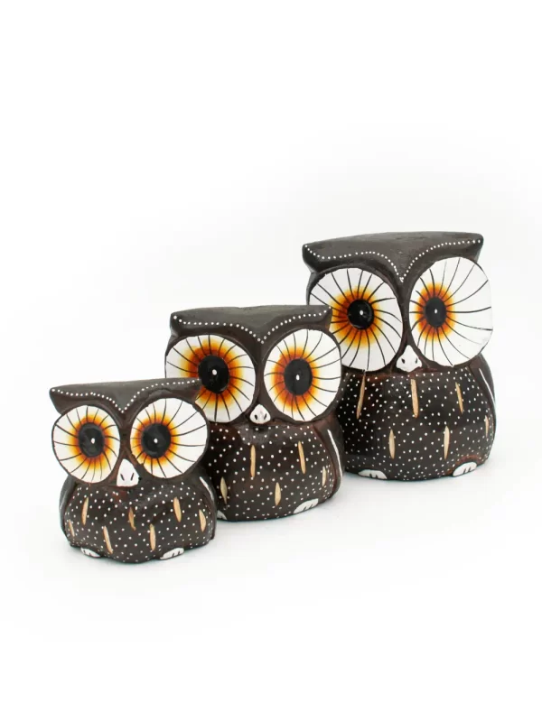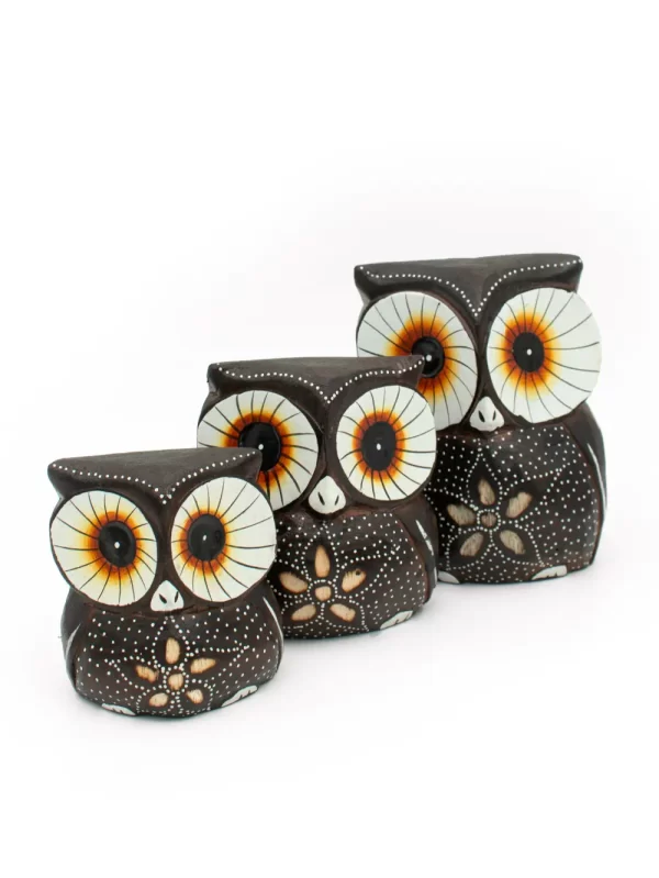 SET DE 3 BUHOS MARRON-E