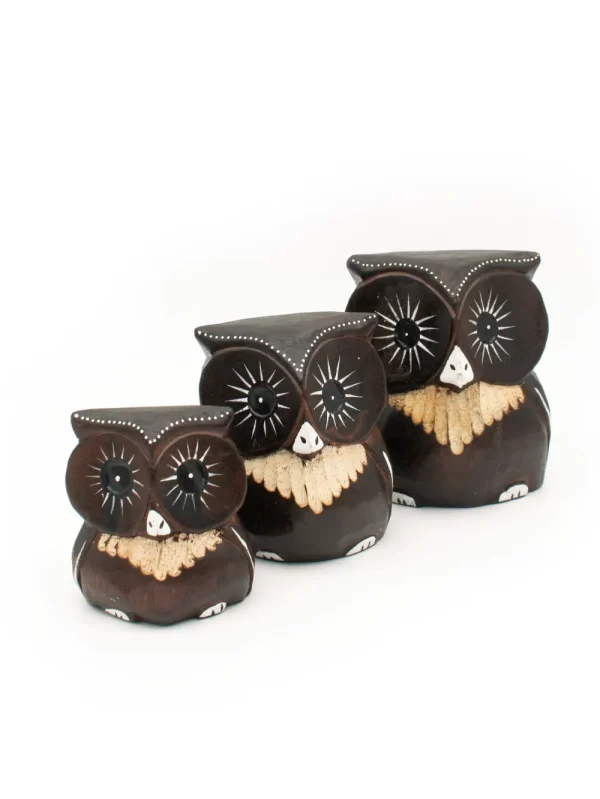 Set de Búhos Material: Madera Medida: 12, 10, 8 cm Forma: Búho Color: Marron