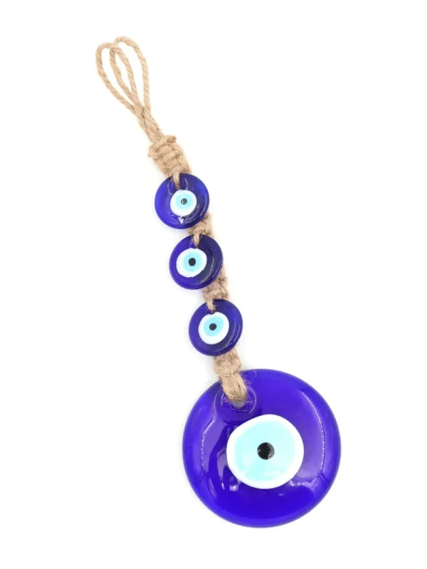 Colgante ojo turco Material: vidrio y cordón trenzadoMedida9.5X14.5cm
