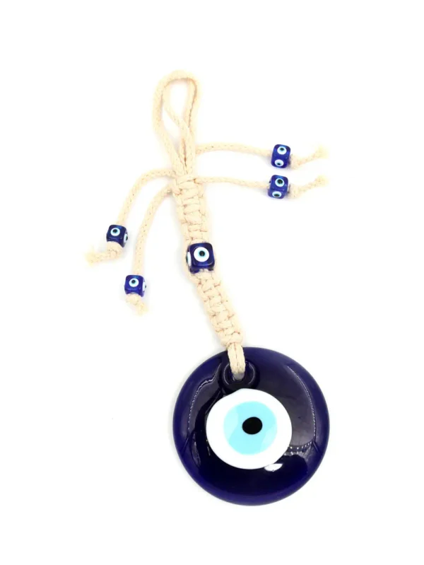 Colgante ojo turco Material: vidrio y cordón trenzadoMedida8 cm