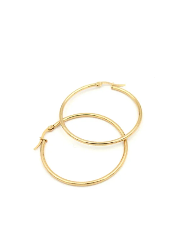 Arete de Acero Dorado Material: Acero Medida: 4.5 cm Color: Dorado Modelo: Argolla Usos y cuidados: Evitar contacto con líquidos abrasivos o agua. Guarda tus accesorios en un ambiente seco y, de preferencia, por separado.