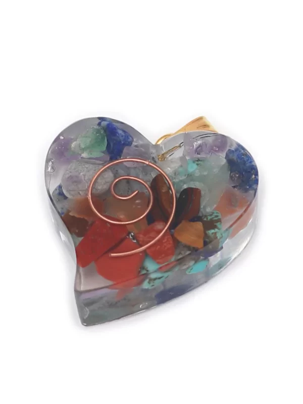 DIJE DE CHAKRA DE RESINA EN FORMA DE CORAZON