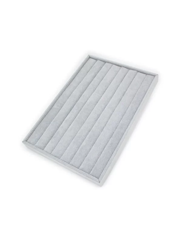 ExhibidorUso:para anillosMaterial:GamuzaMedida:15 de ancho, 23 de largo y 3 de profundidadColor:Negro