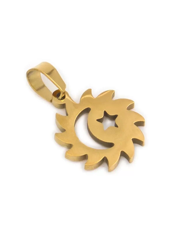 DIJE DE ACERO COLGANTE DORADO DE LUNA Y ESTRELLA