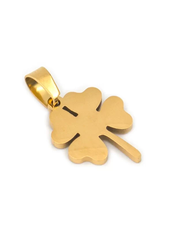 DIJE DE ACERO COLGANTE DORADO DE TREBOL
