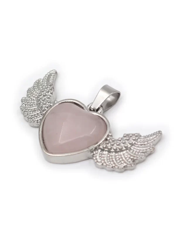DIJE CORAZÓN-ALAS DE ANGEL-CUARZO ROSA