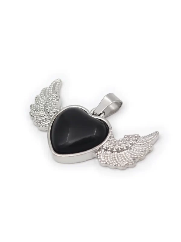 DijeForma:Corazon con alas de angelTamaño:2.5cmx2.5xcmPiedra:Onix