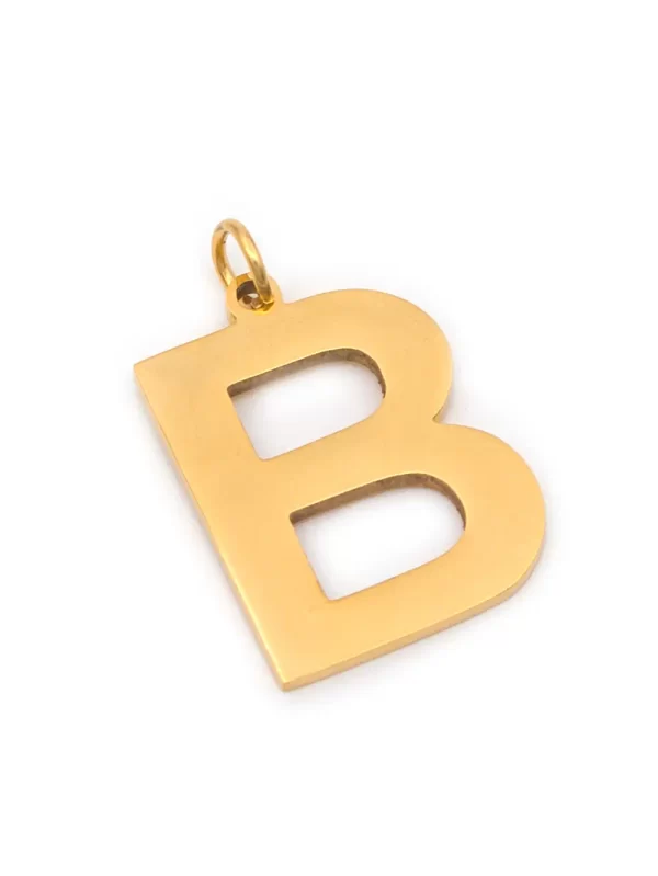 Dije de acero Medida: 2cm - Color: dorado - forma: colgante "B"
