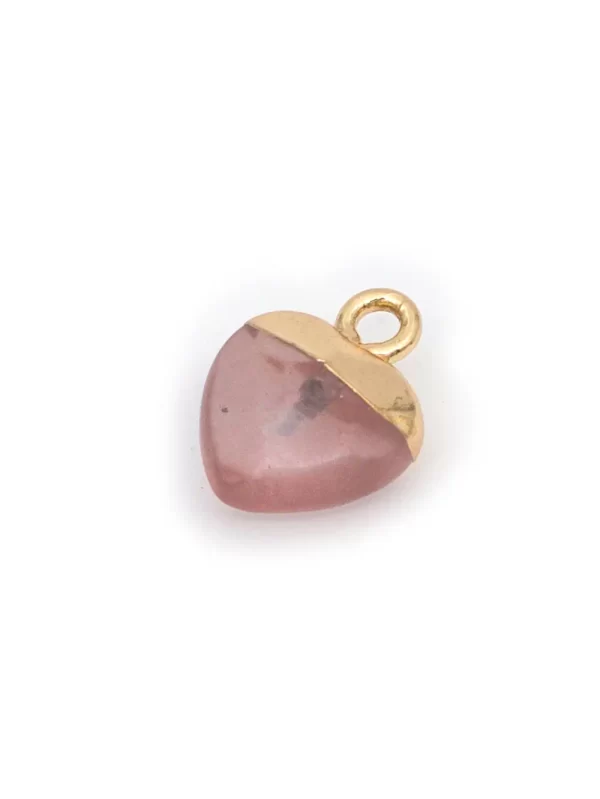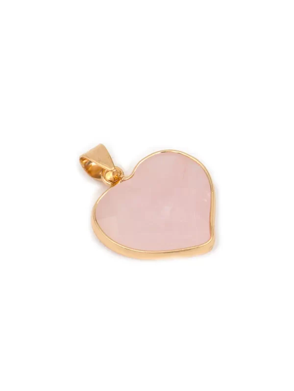 DIJE DE PIEDRA EN FORMA DE CORAZON CON METAL DORADO EN CUARZO ROSA