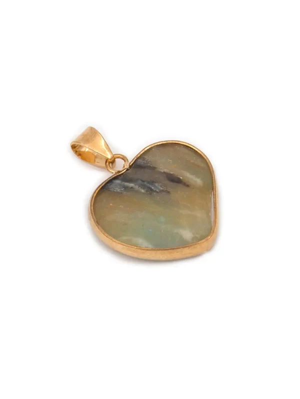 DIJE DE PIEDRA EN FORMA DE CORAZON CON METAL DORADO EN OPALO