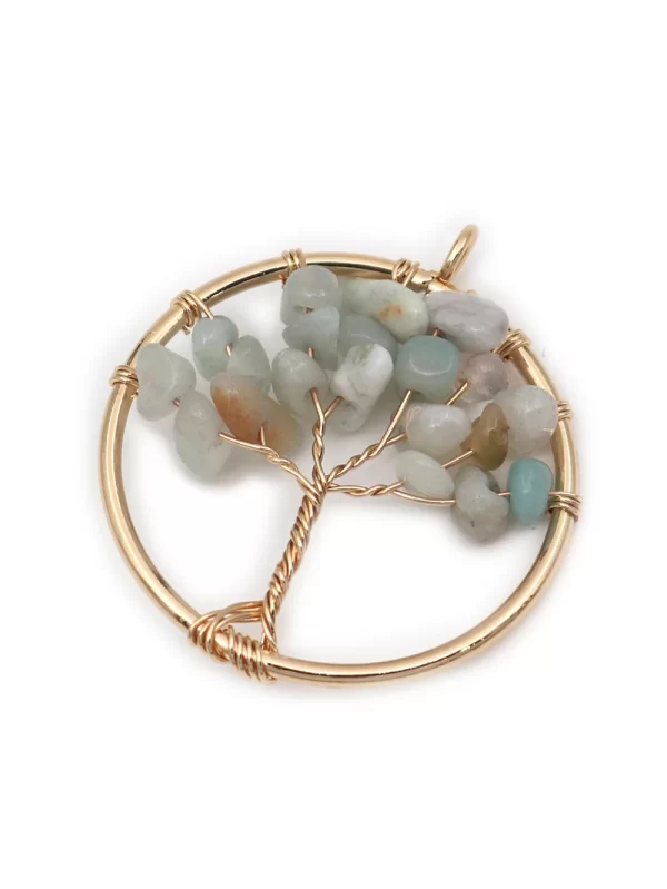 DIJE DE PIEDRA CON METAL DORADO ARBOL DE LA VIDA PIEDRA LUNA