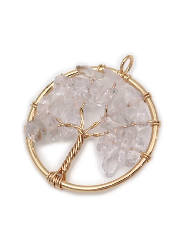 DIJE DE PIEDRA CUARZO CRISTAL EN CASCAJO FORMA DE ARBOL DE LA VIDA