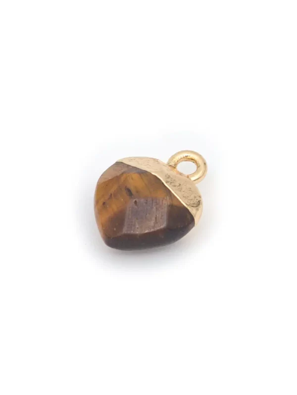 DIJE DE PIEDRA EN FORMA DE CORAZON CON METAL DORADO EN OJO DE TIGRE