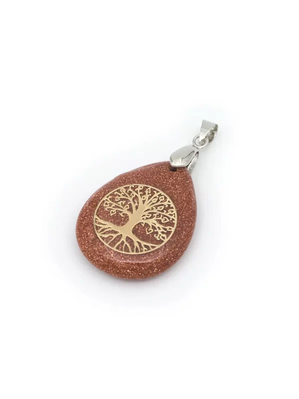 Dije de piedra Medida: 3cm - forma: gota- diseño: árbol de la vida - piedra: lluvia de oro