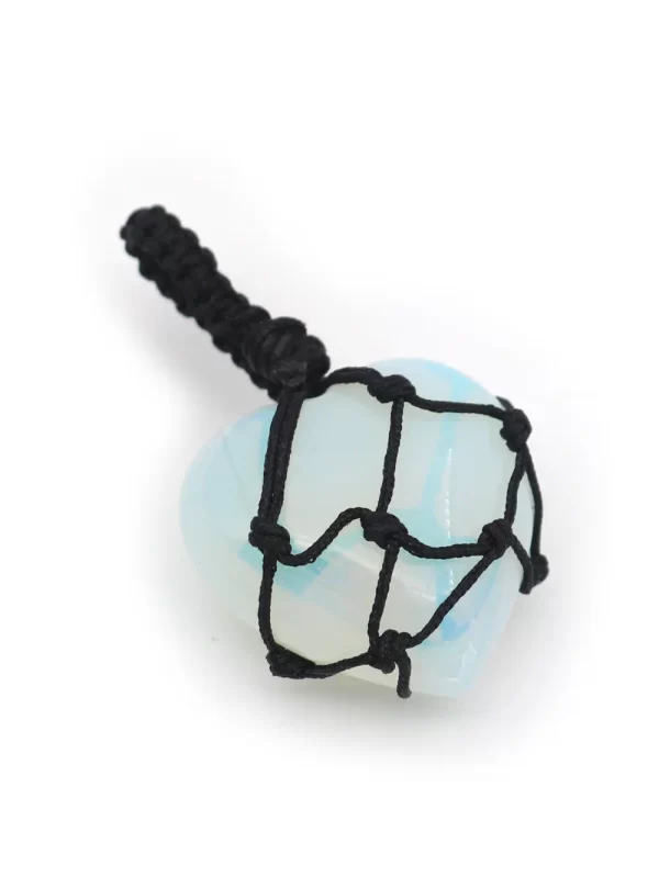 DIJE DE PIEDRA EN FORMA DE CORAZON ENVUELVO DE HILO MACRAME PIEDRA CUARZO BLANCO