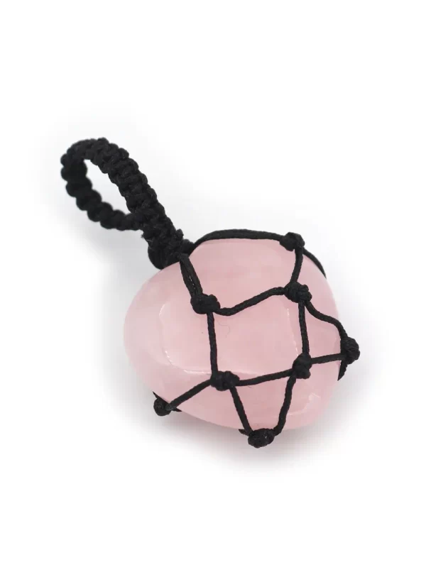 DIJE DE PIEDRA EN FORMA DE CORAZON ENVUELVO DE HILO MACRAME PIEDRA CUARZO ROSA
