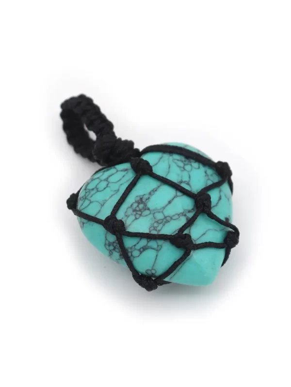 DIJE DE PIEDRA EN FORMA DE CORAZON ENVUELVO DE HILO MACRAME PIEDRA TURQUESA