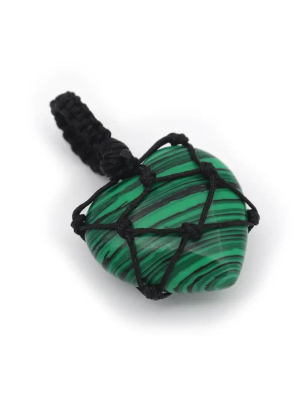 DIJE DE PIEDRA EN FORMA DE CORAZON ENVUELVO DE HILO MACRAME PIEDRA MALAQUITA