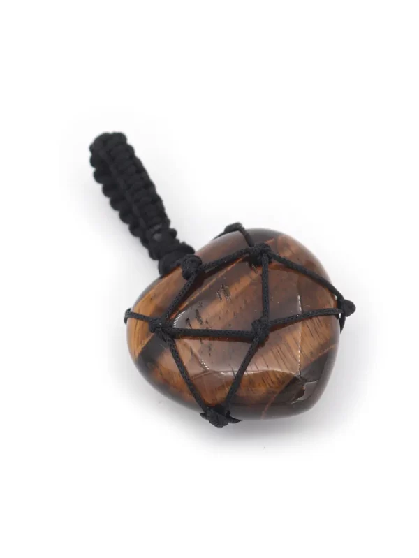 DIJE DE PIEDRA EN FORMA DE CORAZON ENVUELVO DE HILO MACRAME PIEDRA OJO DE TIGRE
