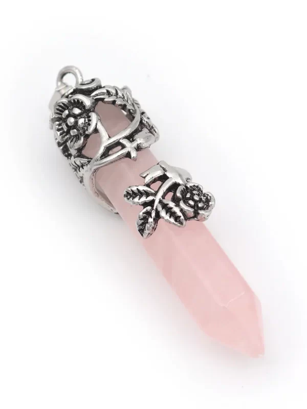 DIJE DE PIEDRA CUARZO ROSA PUNTA HEXAGONAL