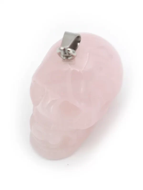 DIJE DE PIEDRA CUARZO ROSA EN FORMA DE CABEZA DE CALAVERA