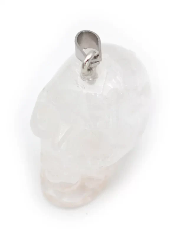 DIJE DE PIEDRA CUARZO BLANCO EN FORMA DE CABEZA DE CALAVERA