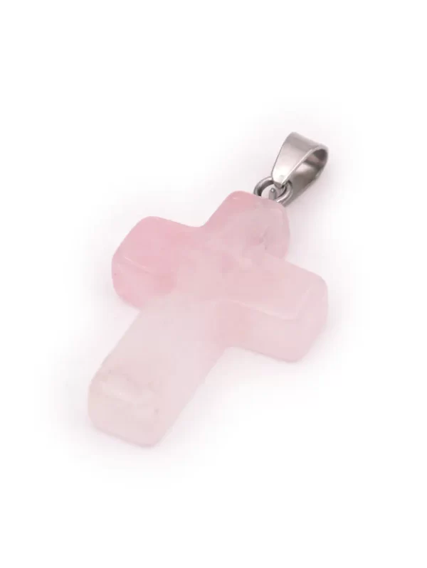 DijePiedra:Cuarzo RosaMedida:2cm x 2.5cmForma:Cruz