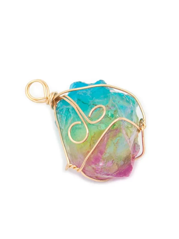 DIJE DE PIEDRA NATURAL MULTICOLOR CON ALAMBRE DORADO