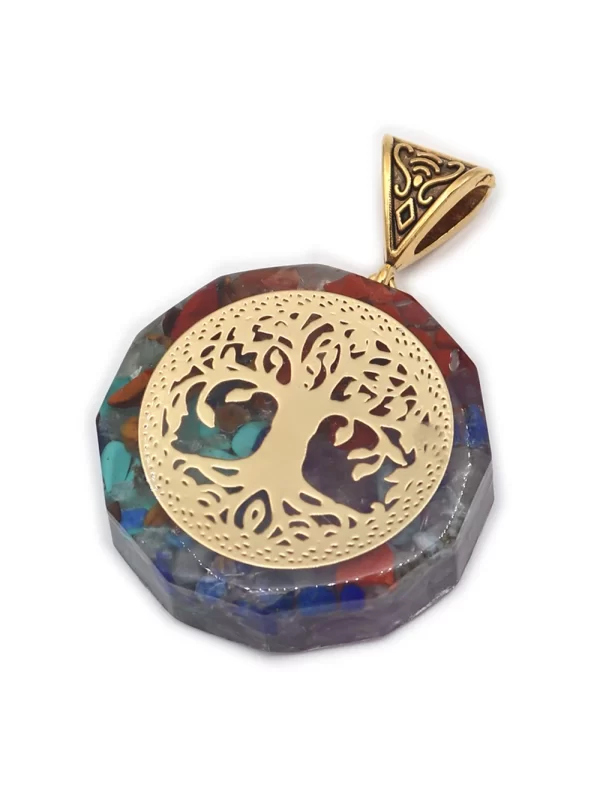 DIJE DE PIEDRA NATURALES CON RESINA 7 CHAKRAS ARBOL DE LA VIDA