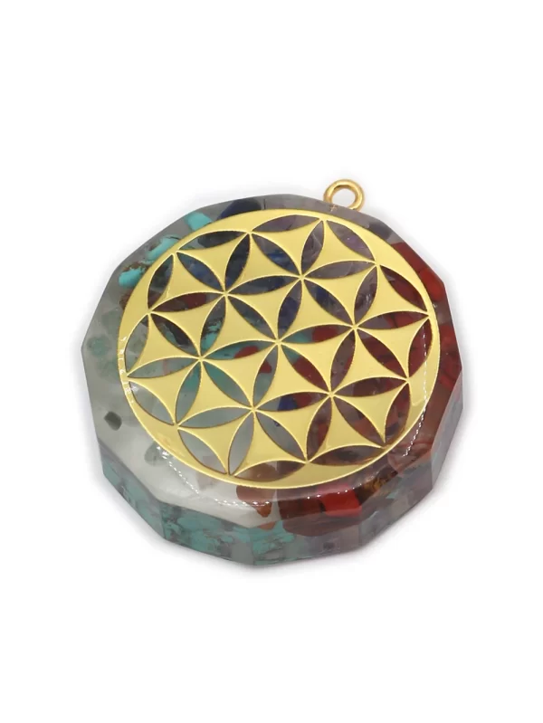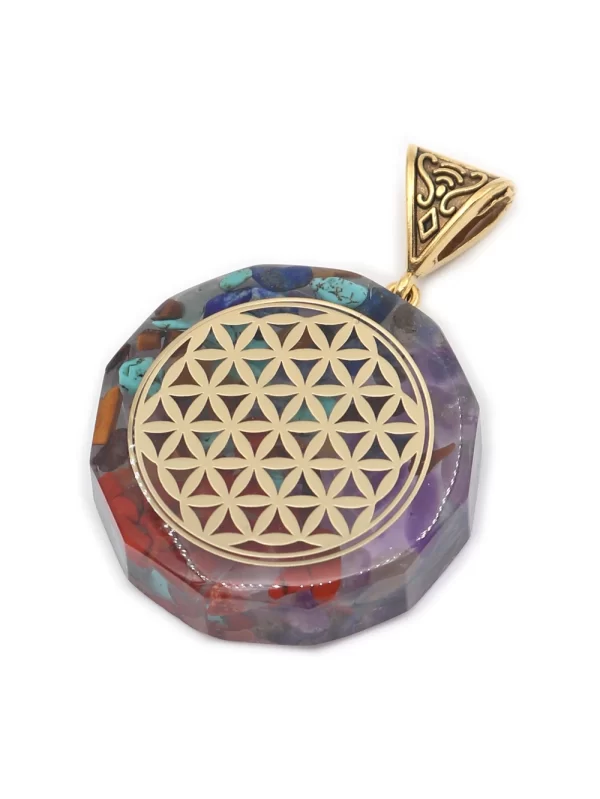 DIJE DE PIEDRA NATURALES CON RESINA 7 CHAKRAS FLOR DE LA VIDA