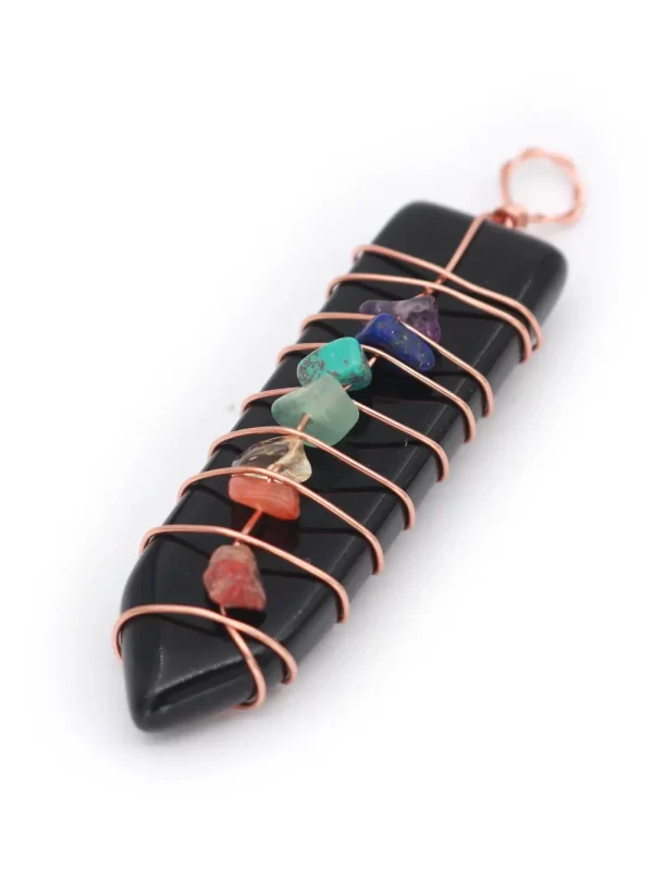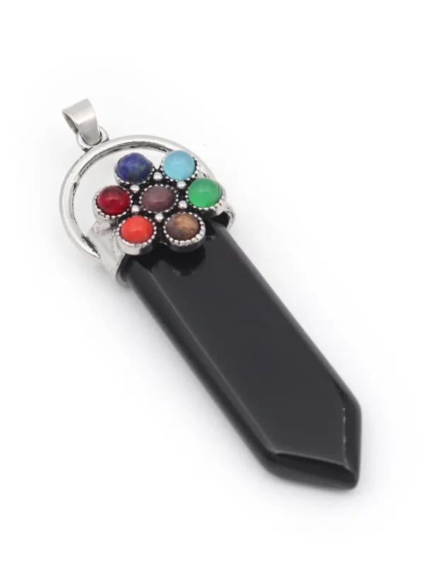 DIJE DE PIEDRA ONIX PUNTA HEXAGONAL Y LAS 7 CHACKRAS
