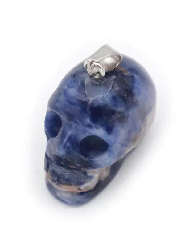 DIJE DE PIEDRA SODALITA EN FORMA DE CABEZA DE CALAVERA