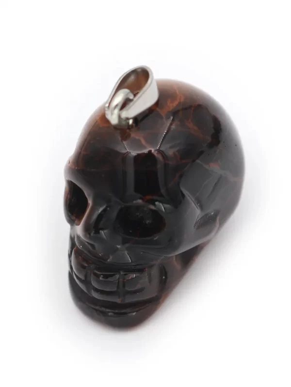 DIJE DE PIEDRA OJO DE TIGRE EN FORMA DE CABEZA DE CALAVERA