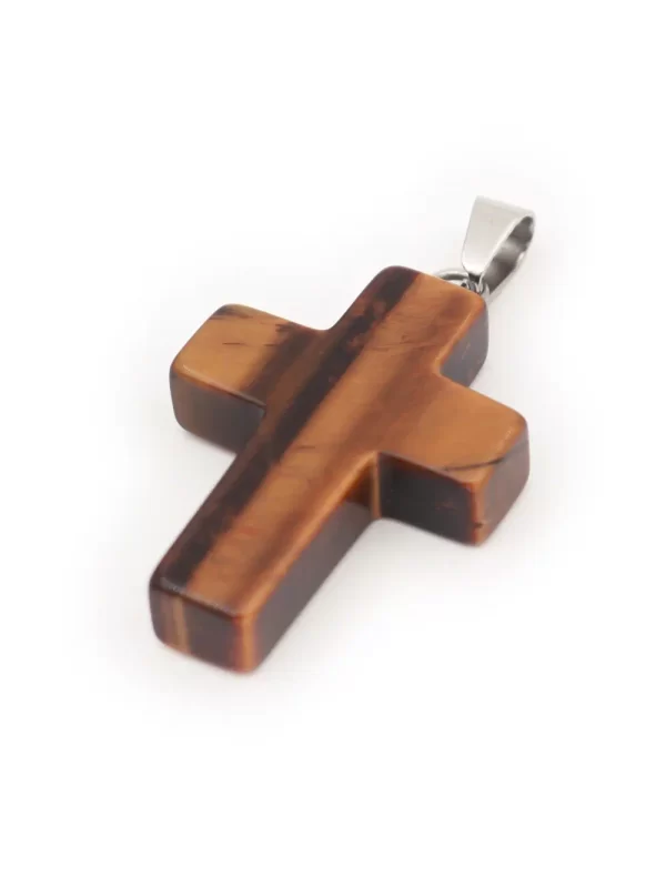 DIJE DE PIEDRA OJO DE TIGRE EN FORMA DE CRUZ