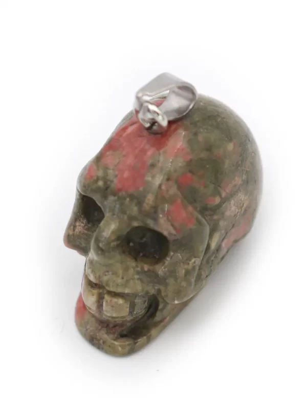 DIJE DE PIEDRA UNAKITA EN FORMA DE CABEZA DE CALAVERA