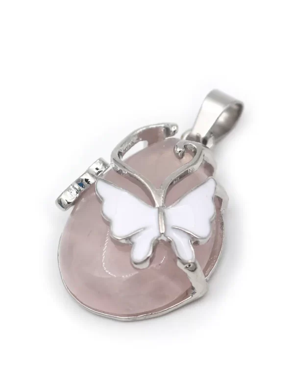 DIJE FORMA DE GOTA CON MARIPOSA-CUARZO ROSA