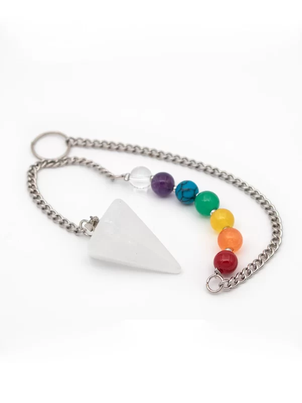 PÉNDULO PIEDRA 7 CHACRAS 3 COLORESTamaño: 3cm aprox.Color:Cristal