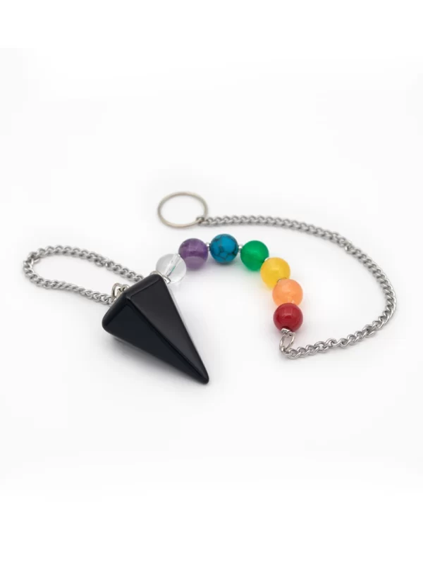PENDULO DE ONIX CON PIEDRAS DE 7 CHAKRAS