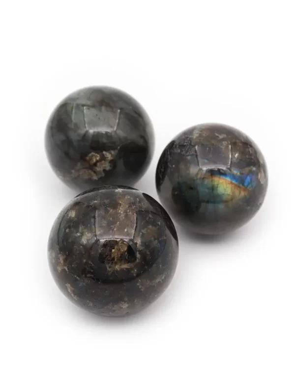 Piedra Labradorita Uso: Decoraciones, Colecciones Material: piedra pulido Peso: 30gr - 50gr Forma:Esfera Nota: La piedra llegará en el rango del peso proporcionado