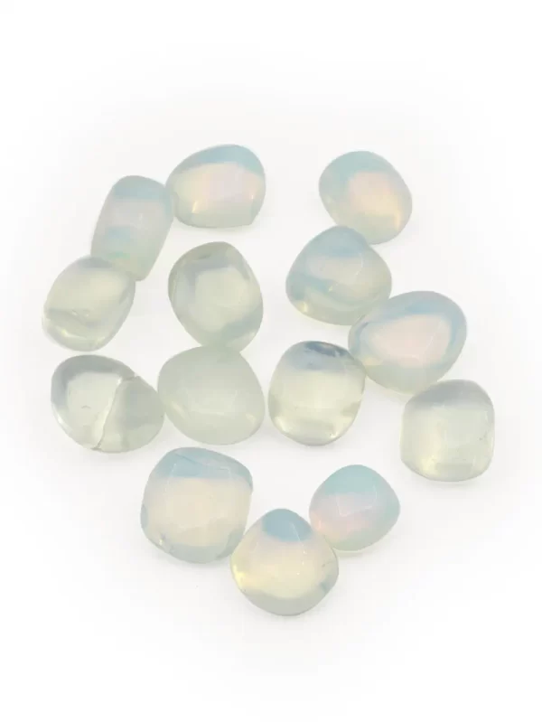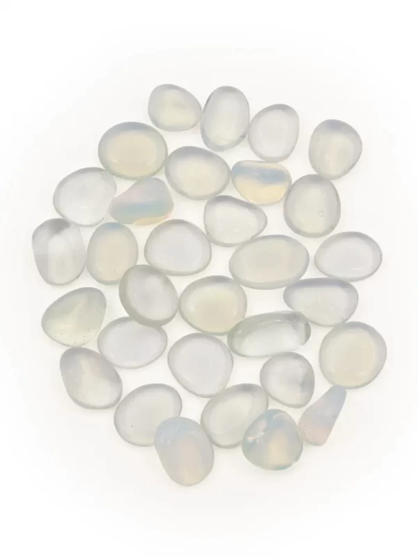 Piedra Luna Uso: Decoraciones, Colecciones Material: piedra pulida Medida: 1x1.5 cm aprox Forma: Tamboreada Peso: 100gr