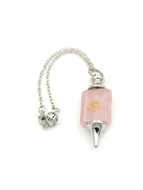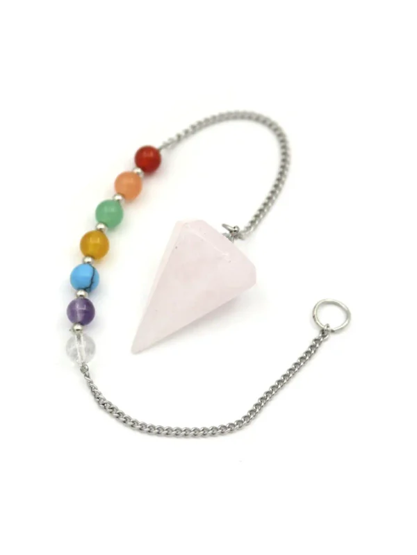 PENDULO DE CUARZO ROSADO CON PIEDRAS DE 7 CHAKRAS