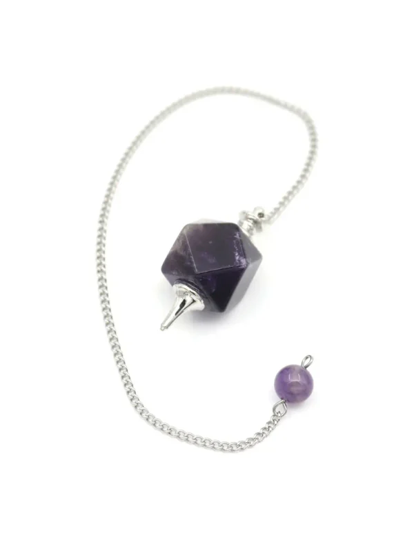 PENDULO EXAGONAL DE PIEDRA AMATISTA CON CADENA